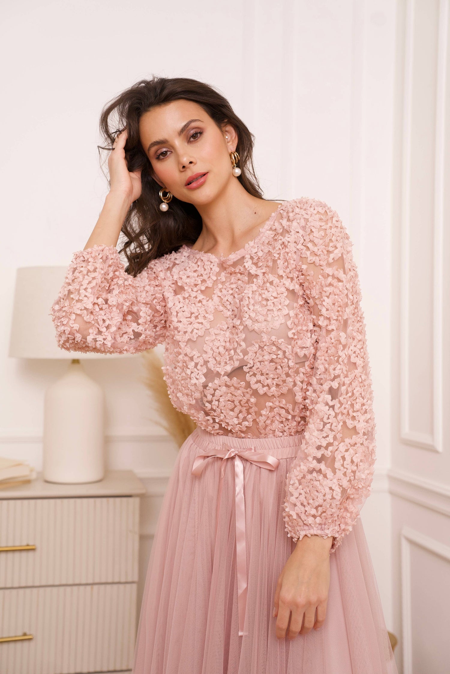 Getextureerde blouse met rozetten (S/M-M/L) - CK08022: Roze / 2S/M-2M/L