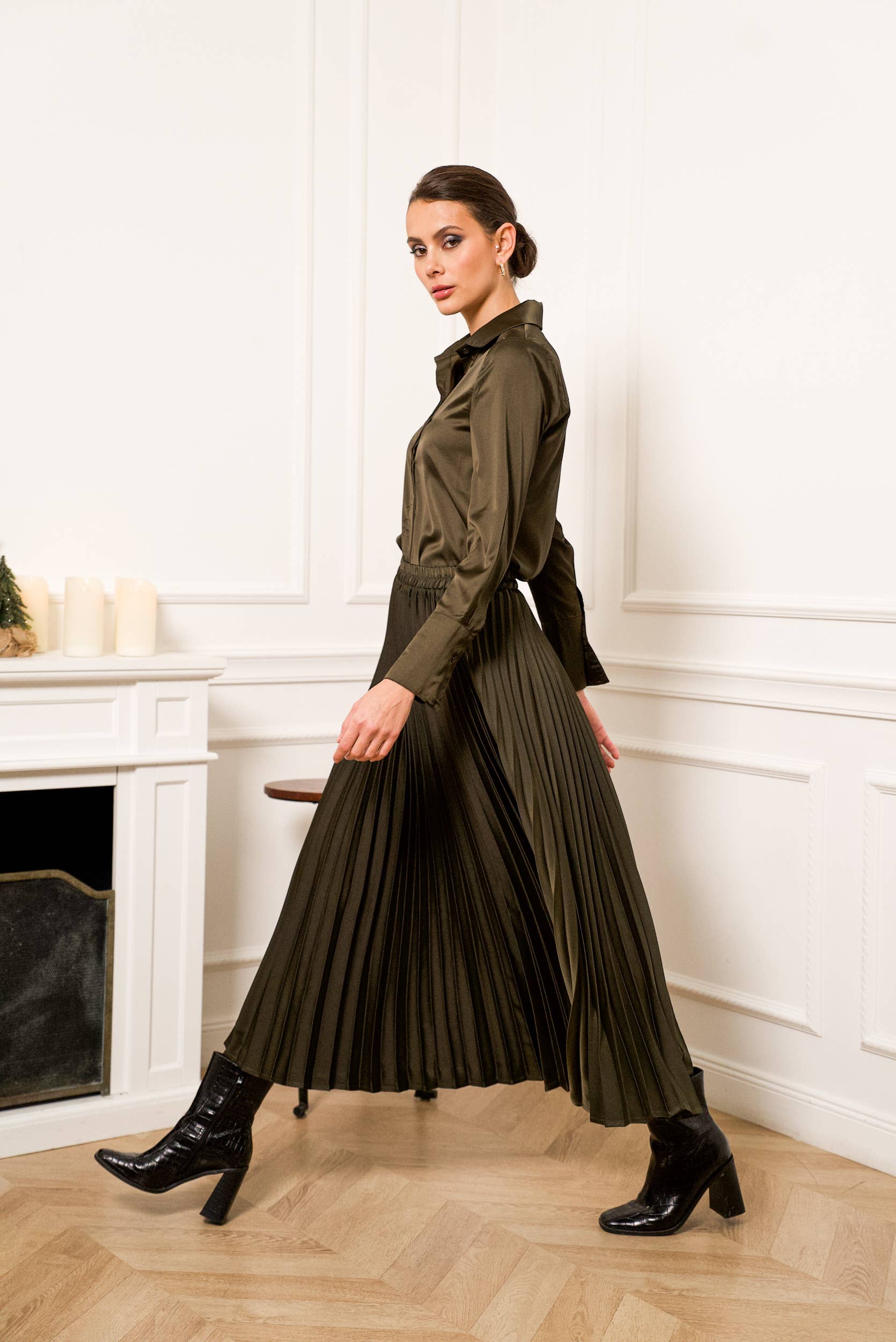 Effen satijnen plooirok